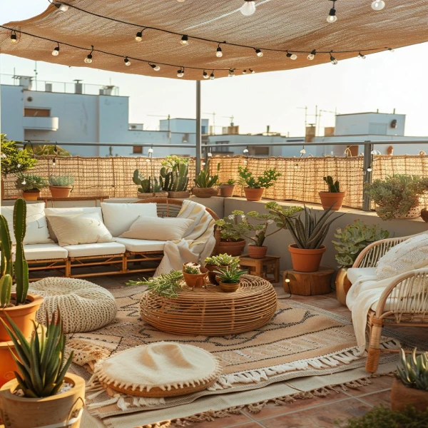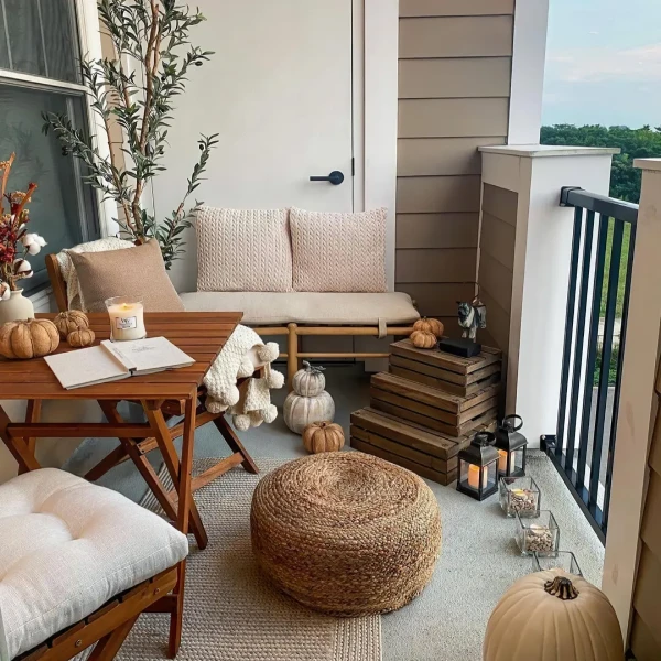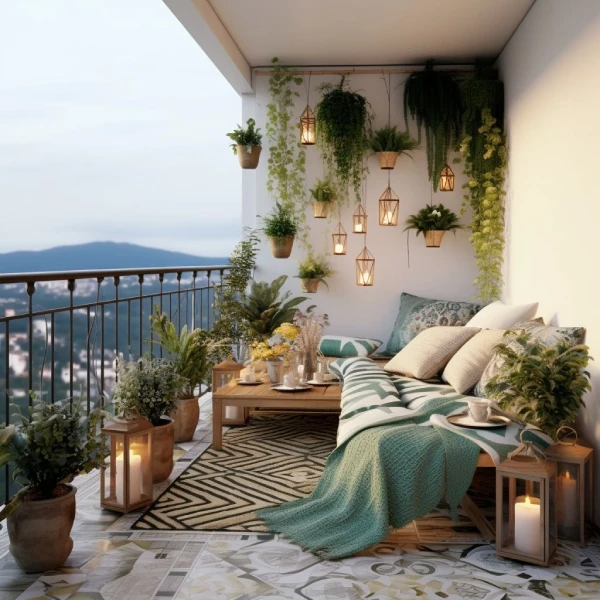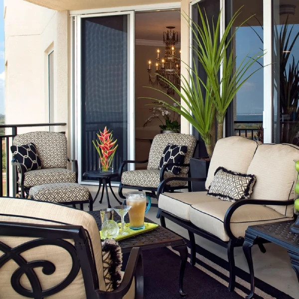 For the furniture used on balcony, you need heat- and moisture-resistant materials. This includes treated wood, wicker rattan, and teak. All these materials are easy to maintain and offer long-lasting use.