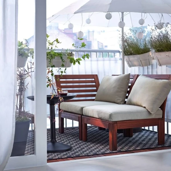 If you opt for balcony furnishings made from wood, we recommend getting UV-resistant varnish or an outdoor-grade oil to protect them. Sealants like teak oil will prevent color fading and wood from cracking.