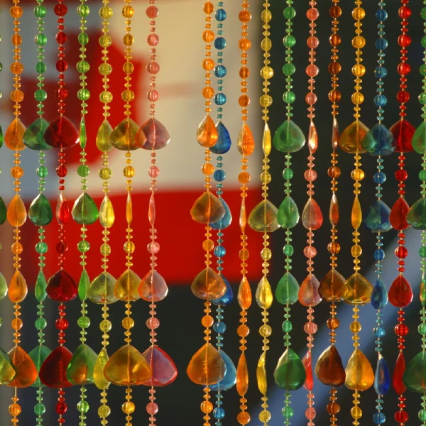 Beaded curtains have those signature beads, which are normally made from acrylic, wood, metal, or glass. The most widely used ones are the acrylic beads that lightweight and highly durable.