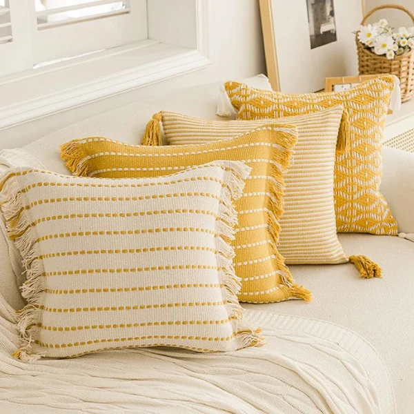 The materials like cotton, linen, and microfiber are ideal for the cushion covers. These materials are all breathable, stain resistant, and resist the heat and humidity of Dubai well.