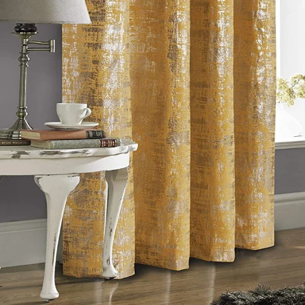 We offer an exclusive collection of gold draperies that maintain their brilliance and texture over time. Our gold curtains Dubai are made using high-quality materials like velvet, linen, polyester, cotton, and more. These fabrics for golden drapes are selected for their natural sheen and resilience. Each of these fabrics is dyed with fade-resistant techniques to ensure its lasting beauty and color depth.