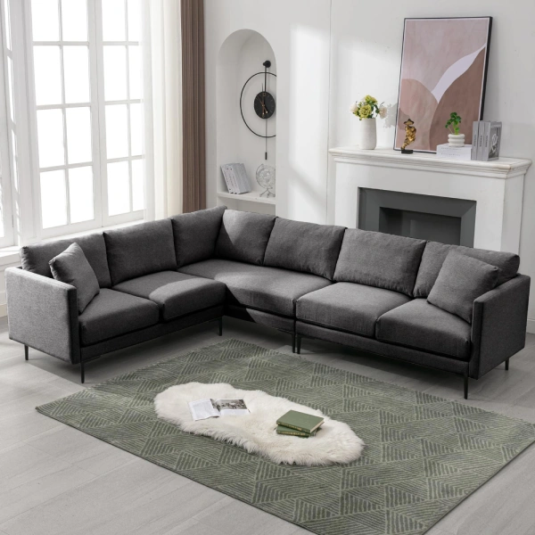 The maintenance or cleaning of the L-shaped sofa mostly includes taking care of its upholstery. Vacuum the fabric on a regular basis with a soft brush attachment to remove the dust. In case of spills, use a damp cloth to prevent any buildup and keep the sofa away from direct sunlight.