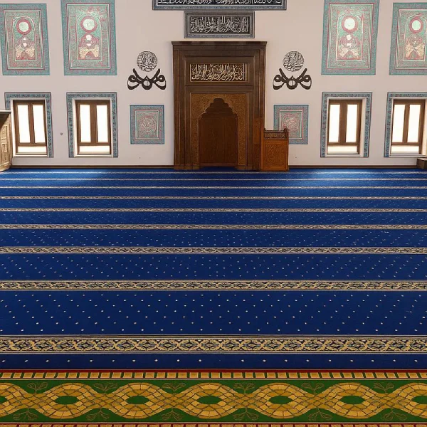 You can select from a wide array of mosque Islamic carpet textures. Get the bespoke piles for these carpets for underfoot comfort and traction. Whether you need a classical mosque blue carpet design or a contemporary geometric patterned mosque interior carpet design, our expert team will manufacture it. Our high-quality Wall to Wall Carpet options for the mosque flooring guarantee a seam-free appearance.
