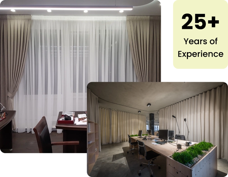 You can now give your office spaces a complete makeover with our best office curtains Dubai. These curtains are ideal for bringing privacy and light control with the right touch of sophistication. We let you order custom office window curtains to match your office interior theme and to improve the workspace productivity.