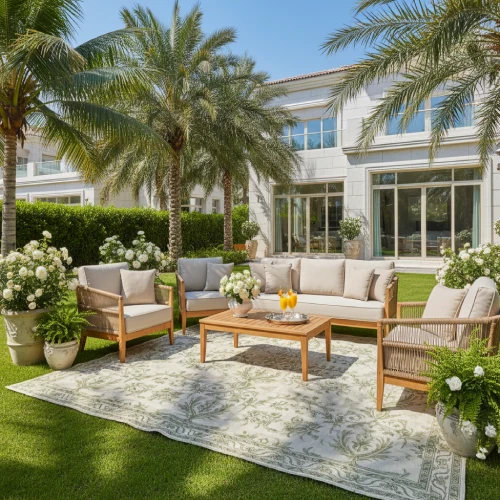 We’re creators of beautiful outdoor spaces. Our collection showcases weather-resistant carpets designed to handle Dubai’s blazing summers and sudden downpours without fading or fraying. Looking for a cost-effective indoor/outdoor carpet Dubai? Or a luxurious custom outdoor floor carpet to match your sophisticated taste? From plush textures to vibrant colors like blue and earthy tones, our range offers something for every preference. Elevate your outdoors effortlessly with our stunning selection. With us, you don’t just buy a carpet; you invest in quality, style, and durability. Let your outdoors reflect your personality with our versatile options.