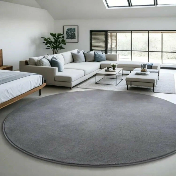 Cool slate and silvery grey tones give this round carpet a sleek, contemporary appeal that complements both minimalist and statement interiors. With dense synthetic fibers, an action-back construction, and an easy-care pile, it delivers lasting comfort, stability, and refined style for everyday living.