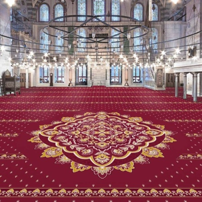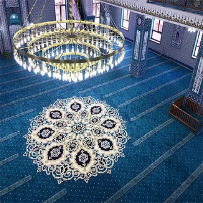 Medallion Design Masjid Carpet enhances mosque interiors with a perfect blend of elegance, comfort, and practicality. Crafted from soft yet durable polypropylene, this masjid carpet offers easy maintenance, long-lasting performance, and a comfortable surface for daily prayers. Its vibrant medallion pattern adds visual harmony, creating a serene and inviting prayer environment for worshippers