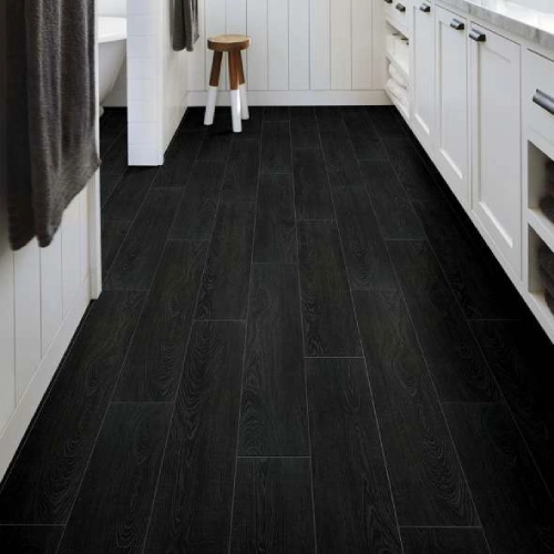 Elevate your space with Phantom Oak Vinyl Flooring. Deep ebony tones with grey highlights create a sleek, dramatic wood look, while its durable, slip-resistant, and easy-to-clean design suits any modern décor.