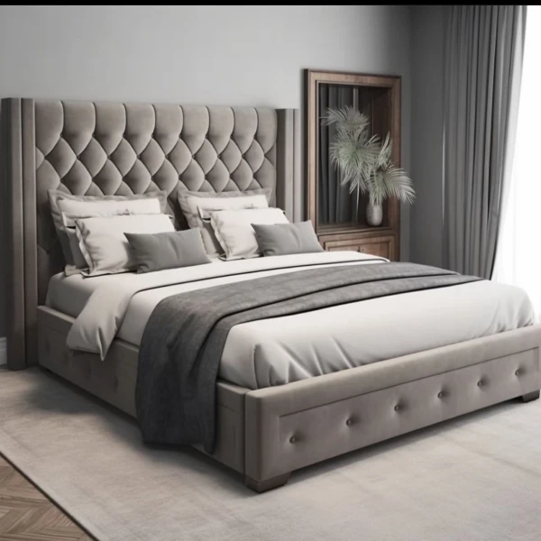 The cost of the upholstered bed ranges from AED 2000 to AED 10000. This price change is due to the design of the bed frame, the size of it, and the foam & upholstery fabric used.